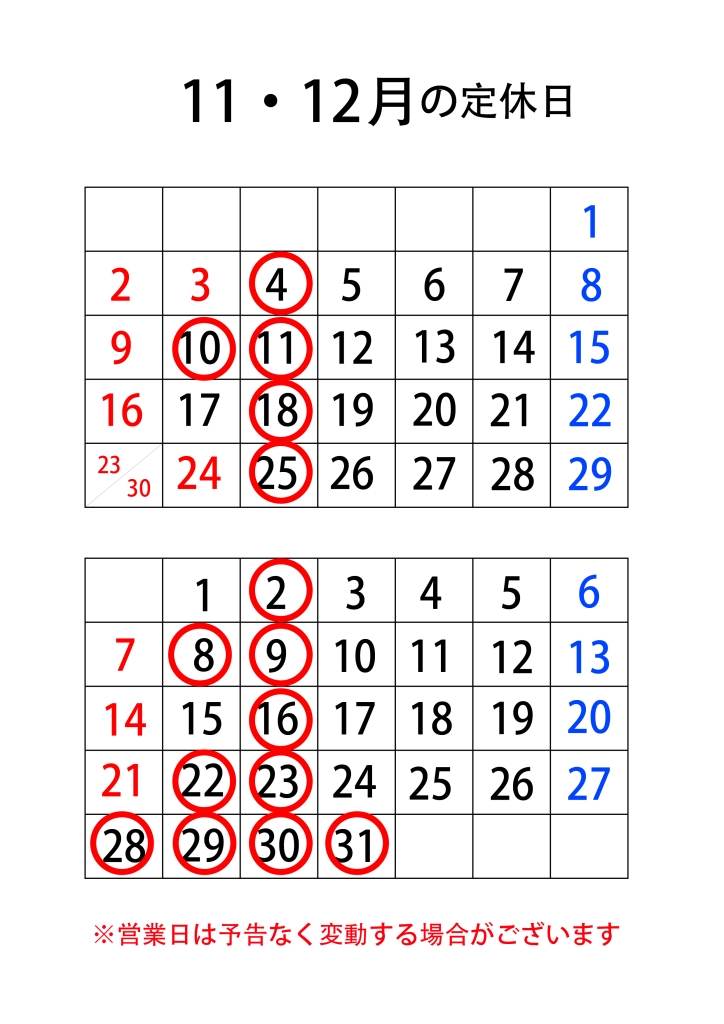 ツイート 2025年 11・12月の定休日 2025年10月16日 16:00 お知らせブログ新着 ※年末年始休業:12/28(日)~1/3(土) ※2026/1/4(日)~1/13(火)は成人式業務のため、内容によりお受けできません。 ☎04-2991-5300 お問い合わせはこちら ツイート この記事を書いたのはスタジオリッツ所沢店ベルエクラです。 ▼スタジオリッツ所沢店ベルエクラ ▼〒359-0034埼玉県所沢市東新井町306-1 ▼℡04-2991-5300 書いた記事一覧 Today 1Week Total 新着 キャンペーン イベント ブログ コラム お客様の声