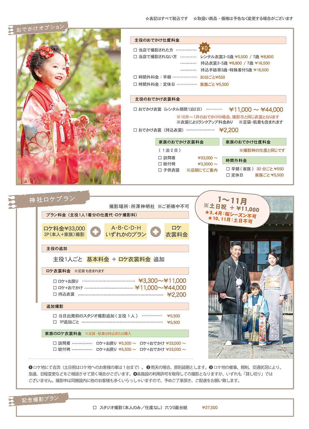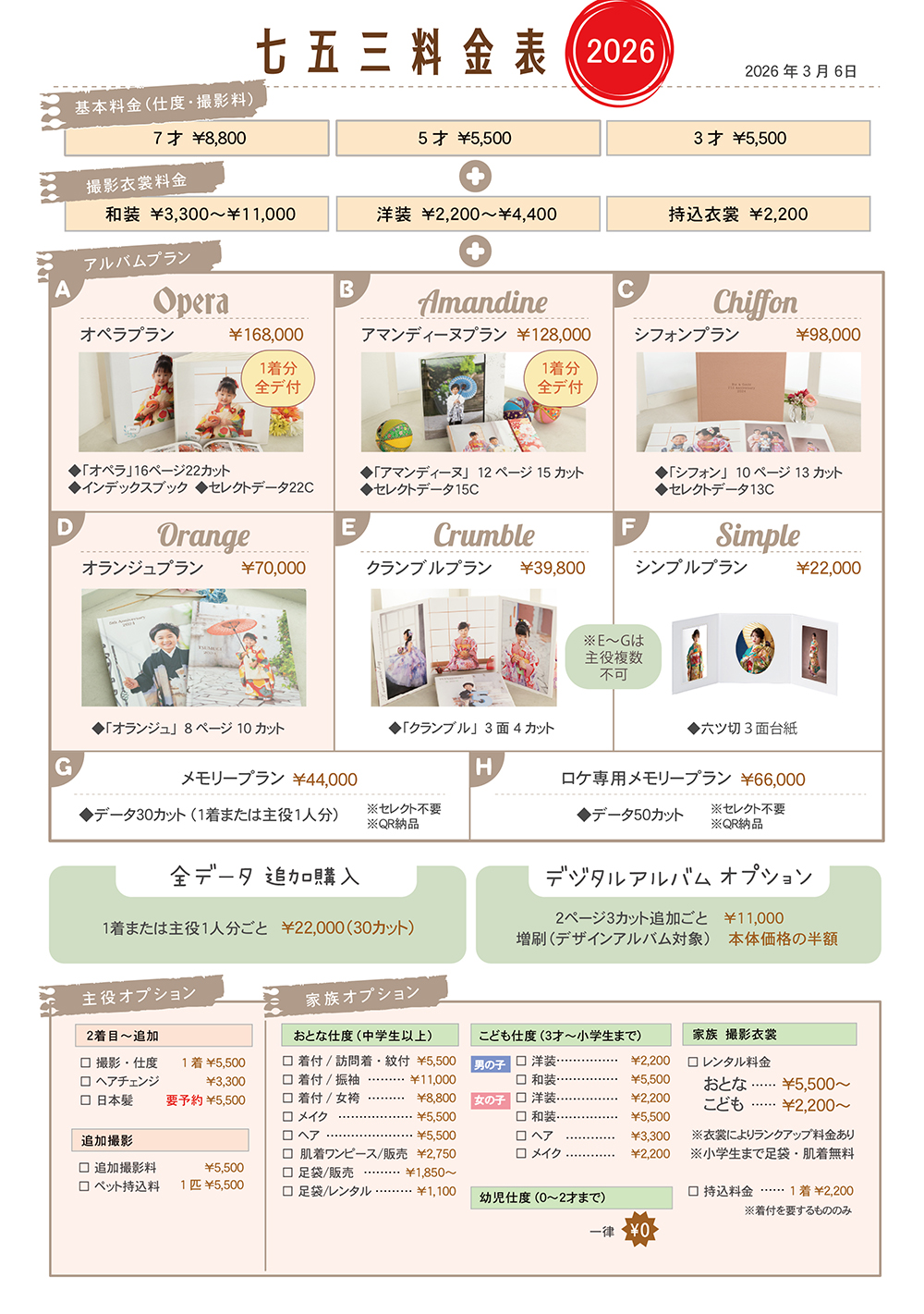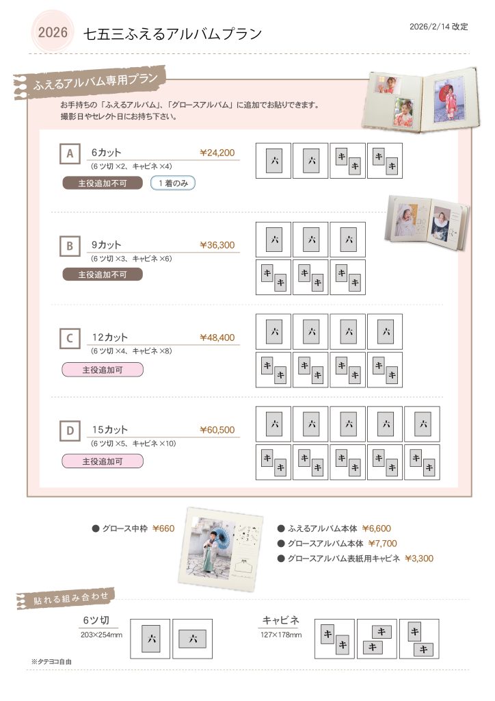 ベルエクラの2026年度の七五三料金表です。